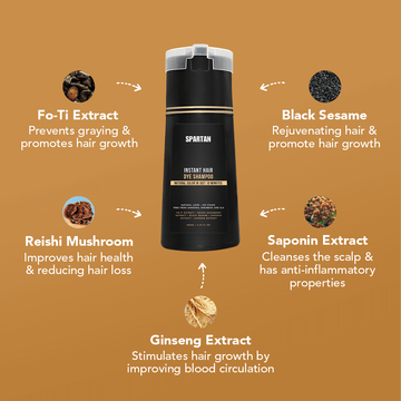 SPARTAN™ Hair Dye Shampoo for Men combines premium ingredients to strengthen and color your hair, ensuring it remains robust and well-conditioned.